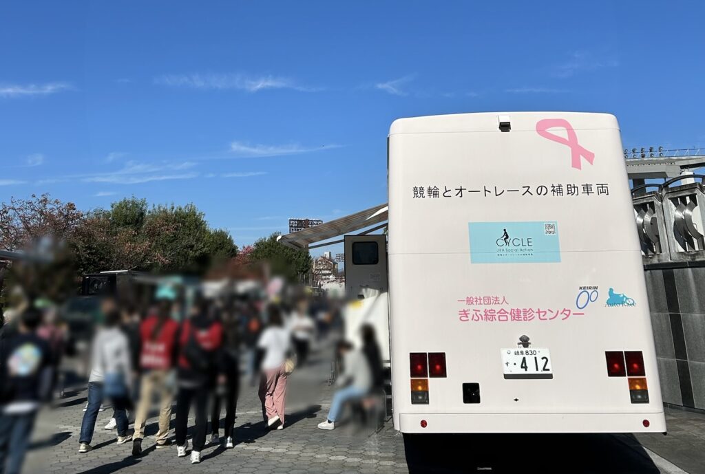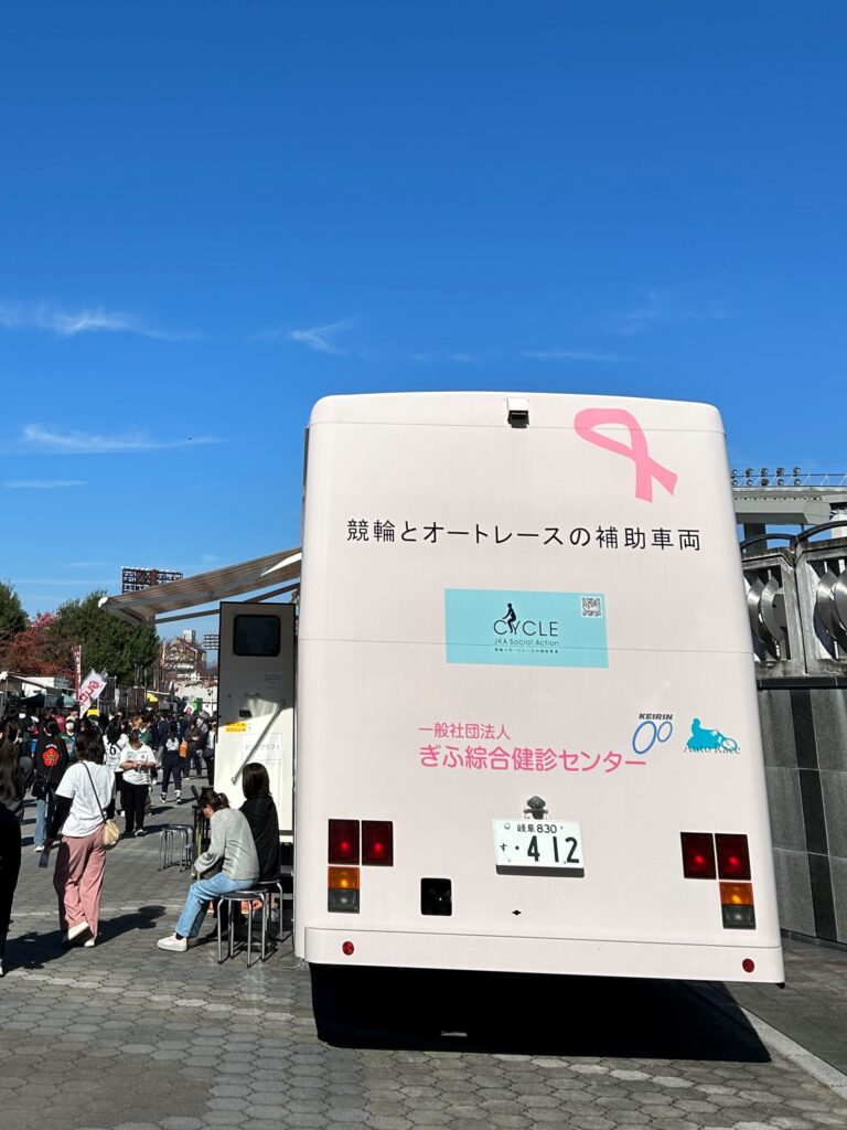 ぎふピンクリボンは「まずは私が持続可能に!」をテーマに女性のがん罹患率第1位である乳がんを中心に、健康な体づくりや定期的ながん検診の重要性を訴えていく活動をしている2022年に設立された岐阜市活動団体です。岐阜県健康福祉部と共に県内各地で乳がん検診バスをイベント会場に設置し、検診費用をぎふピンクリボン実行委員会が負担することで、希望者(35歳以上で初めて受診する方、もしくは長期間受診していない方に限る)に無料で乳がん検診を受診していただくプロジェクトを実施していますが、当センターでは、ぎふピンクリボンの活動に賛同し、昨年度に引き続き、ピンクリボン実行委員会の自主開催による乳がん検診実施に協力する形で乳がん検診を実施しました。