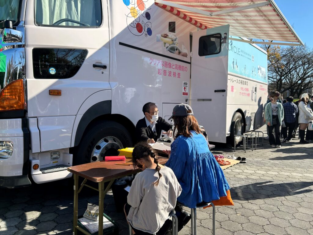 秋晴れのもと、会場に来場された27名の方に乳がん検診を受診していただきました。